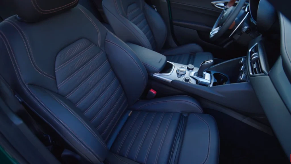 Rear passengers enjoy quality materials and thoughtful details, proving that the Giulia isn’t just a weekend toy.