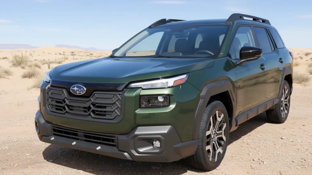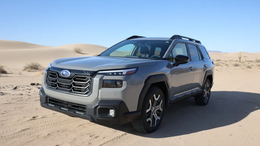 Subaru has moved toward a boxier, more rugged design language, giving the vehicle stronger SUV proportions without abandoning its wagon DNA.